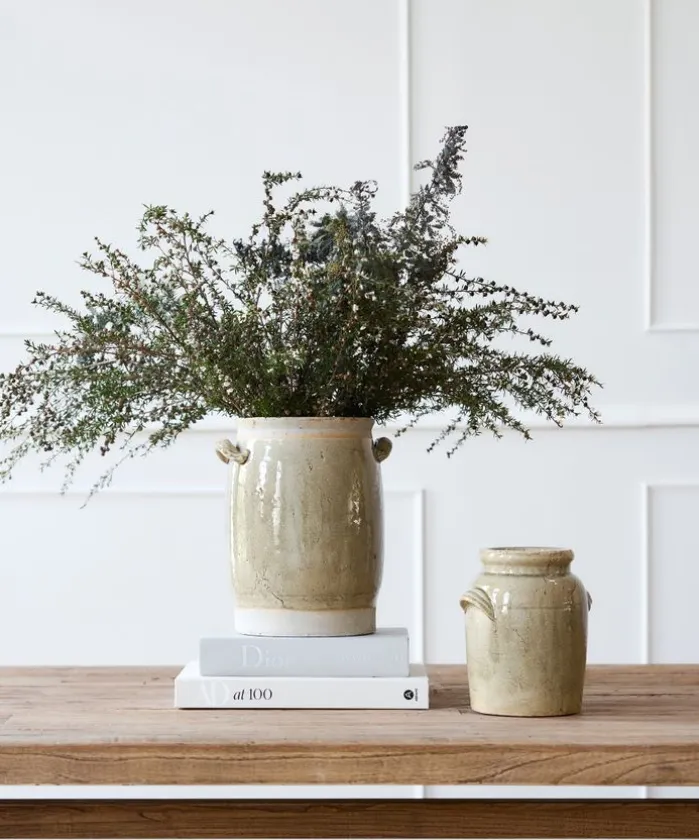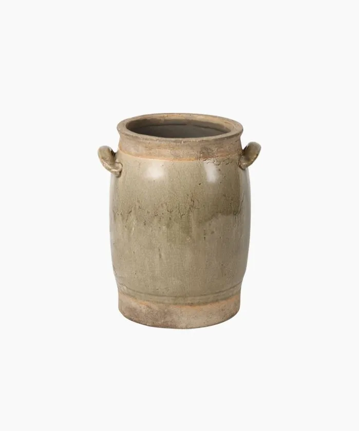 - Style Description:The Almada urn is a primitive style ceramic made from terracotta with a beautiful soft taupe glaze and petite cup handles. Perfect for displaying on the shelf or using to hold freshly cut flowers.