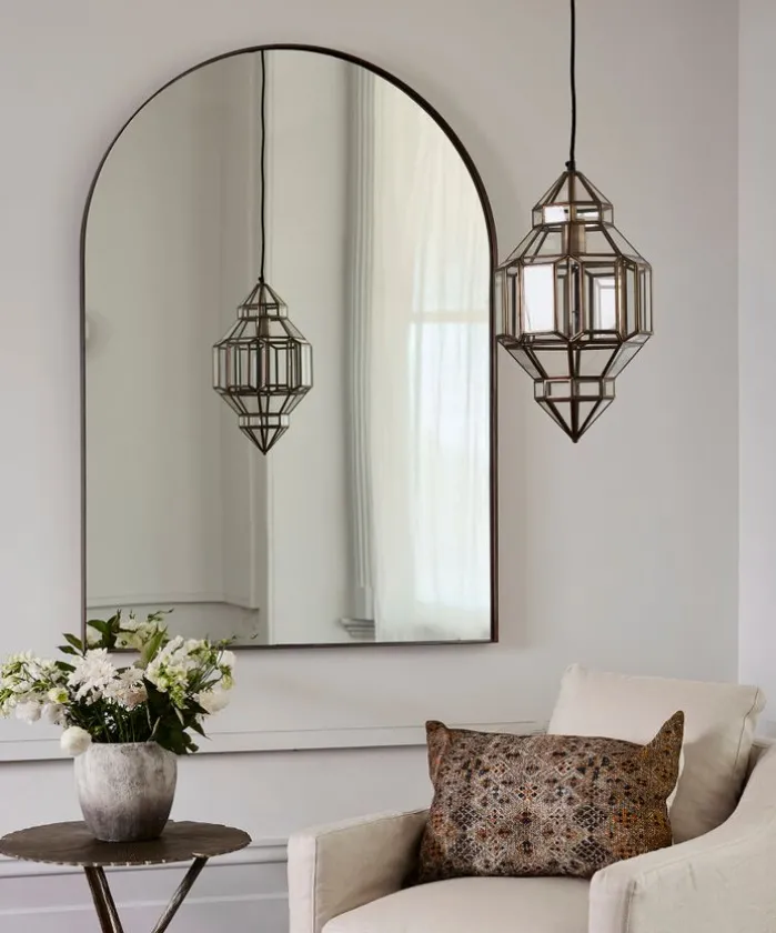 - Style Description:Designed to be both simplistic and substantial, the Bouvier Mantel Arch mirror is a statement piece for the modern home. Crafted from iron with a copper bronze finish.