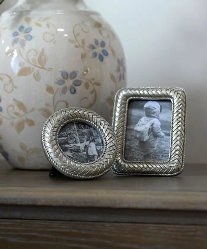- Style Description:Silver weaved style photo frame. The perfect way to display treasured moments.