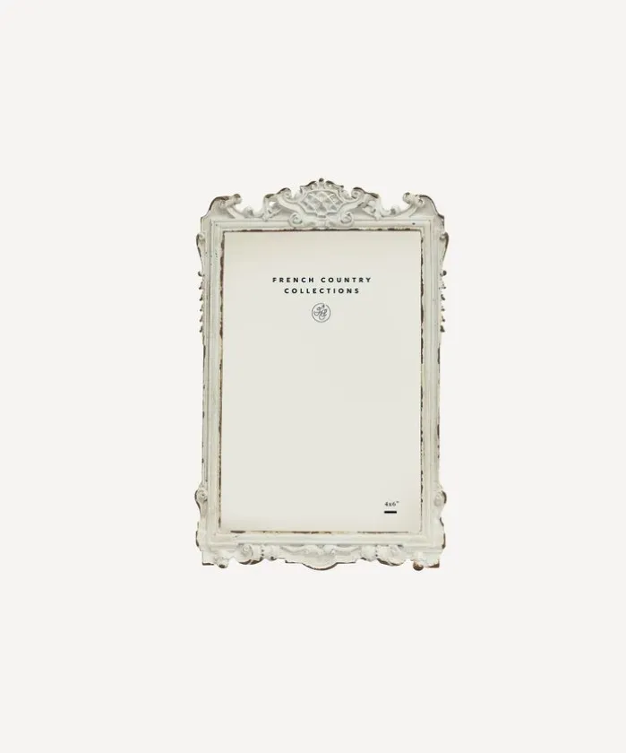 - Style Description:Brocante style, vintage white metal picture frame for a 4×6″ photograph.