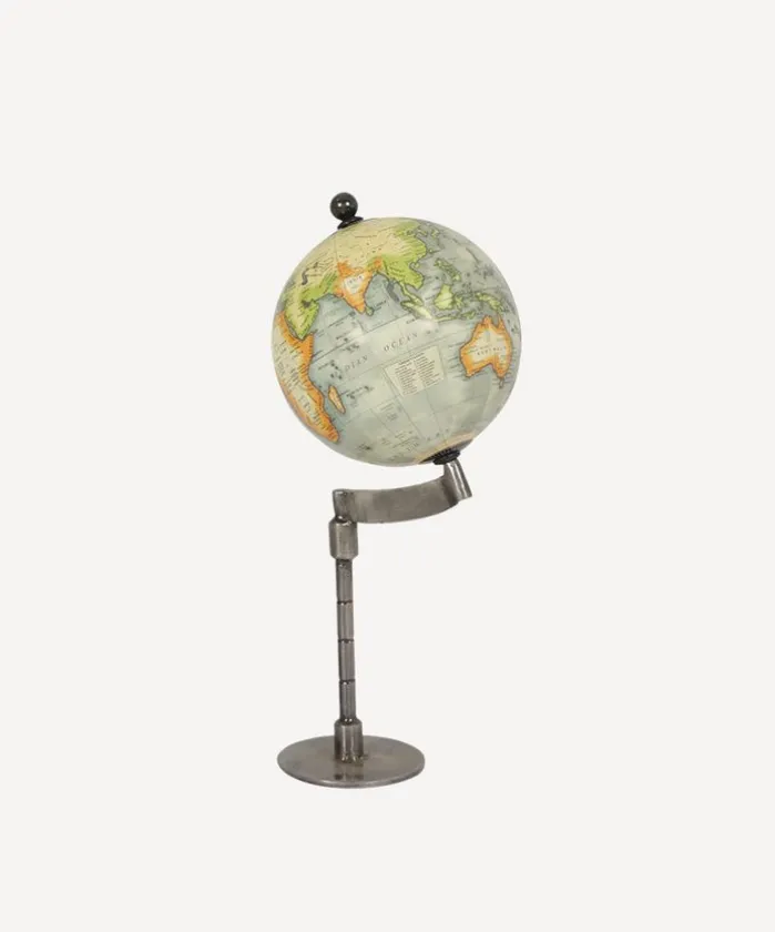 - Style Description:Enrich your home and study the world with one of French Country’s favourite decorating pieces. Sea green 6 inch globe that rotates on a grey nickel iron stand.