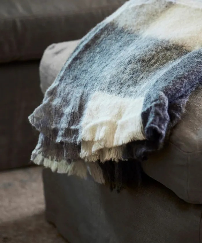 - Style Description:Snug throw in chickened black and white weave with fringe tassel detailing.