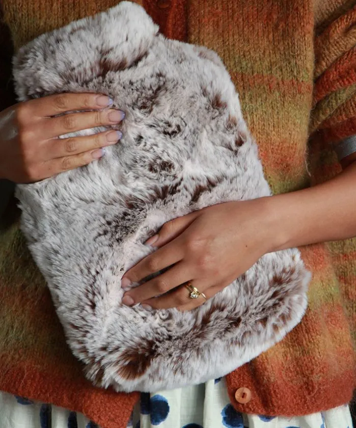 - Style Description:An incomparably luxurious accessory, this faux fur hot water bottle cover, with a supple and wavy fall, is synonymous with haute couture. A sensual and precious material par excellence, faux fur has a very silky feel. This plaid is the result of exclusive French manufacturing know-how.