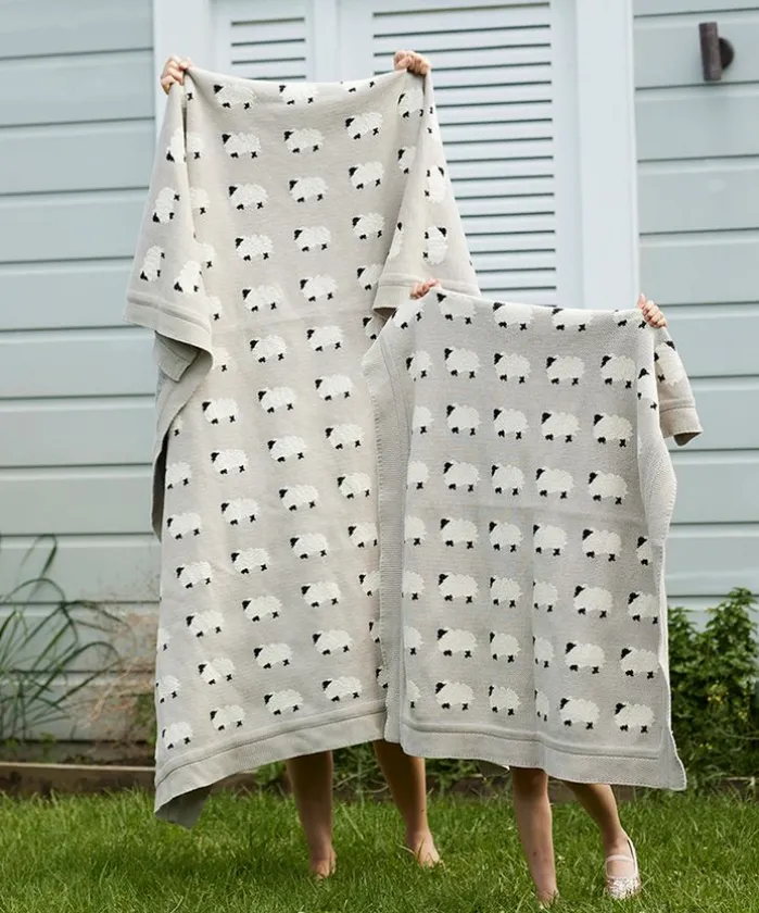 - Style Description:100% cotton taupe throw with black and white sheep is a firm favourite. Its generous size and weight make it perfect as a bed cover, but also a lovely throw to wrap up in on a cooler night.
