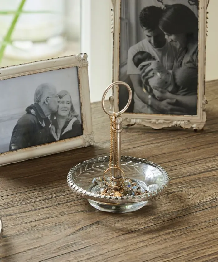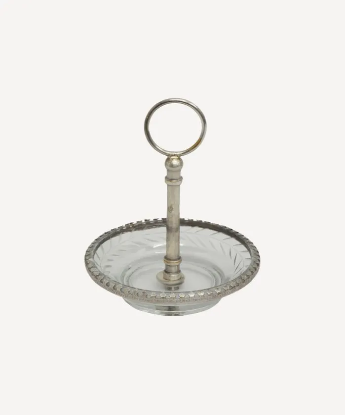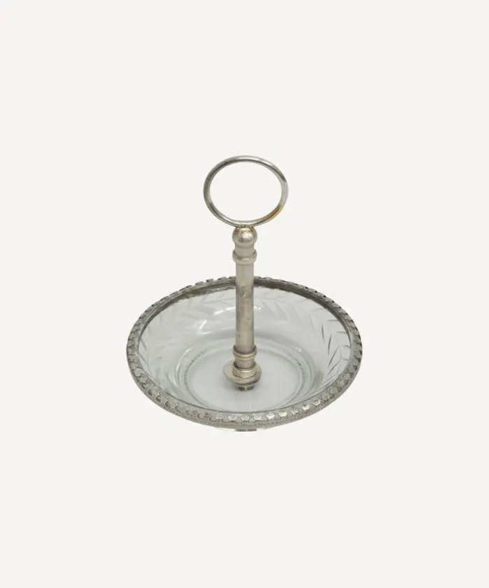 - Style Description:Elegant cut glass dish with handle, use to hold jewellery.