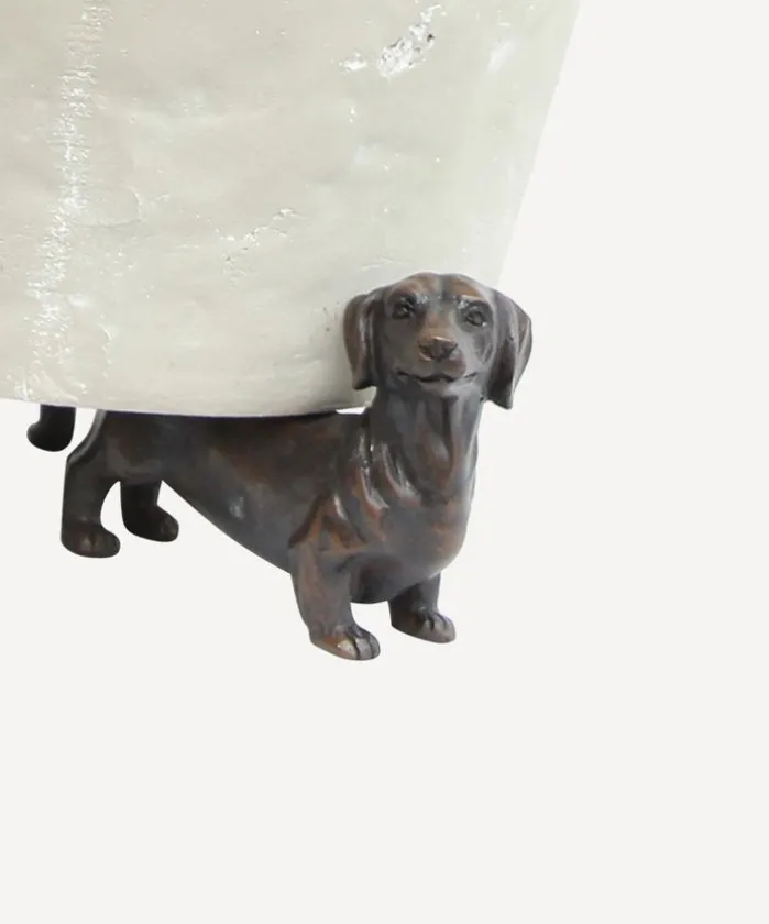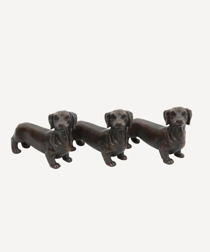 - Featured:Three resin Dachshund dogs to use as a pot stand or as individual ornaments.