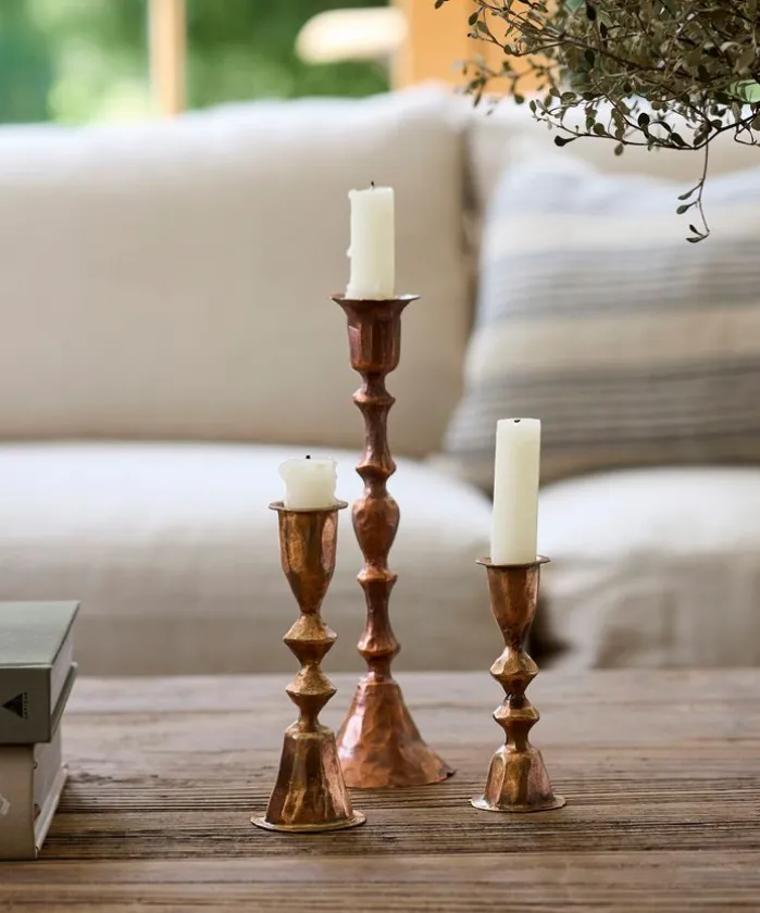 - Style Description:Personalize your home décor with these unique, copper-forged iron candleholders, reminiscent of old-medieval style, the beautiful copper finish of these brings a warm rustic feel.