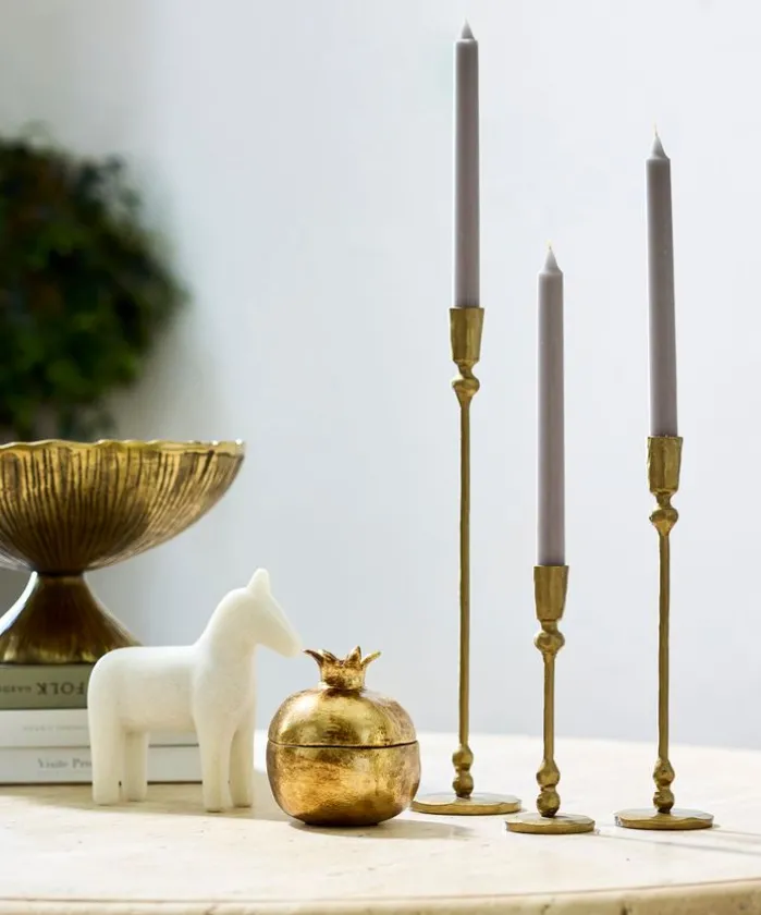 - Style Description:These elegant, gold-forged iron candlesticks will complement a range of interior styles from modern to classic. Cluster candlesticks together for an eye-catching and functional addition to your home décor.
