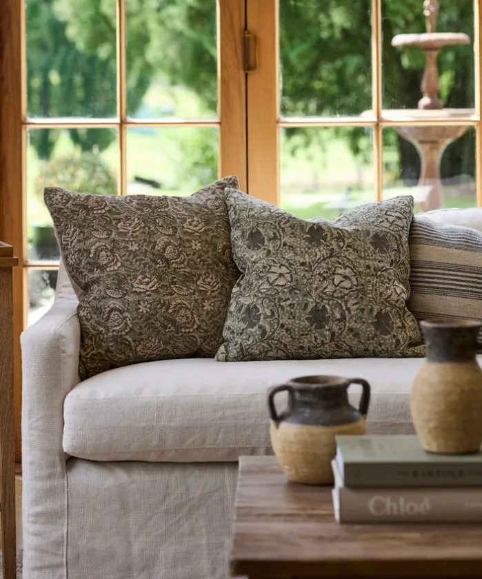 - Style Description:Heritage inspired floral print cushion in soft linen. Perfect for bringing a floral touch into the home in soft muted tones.