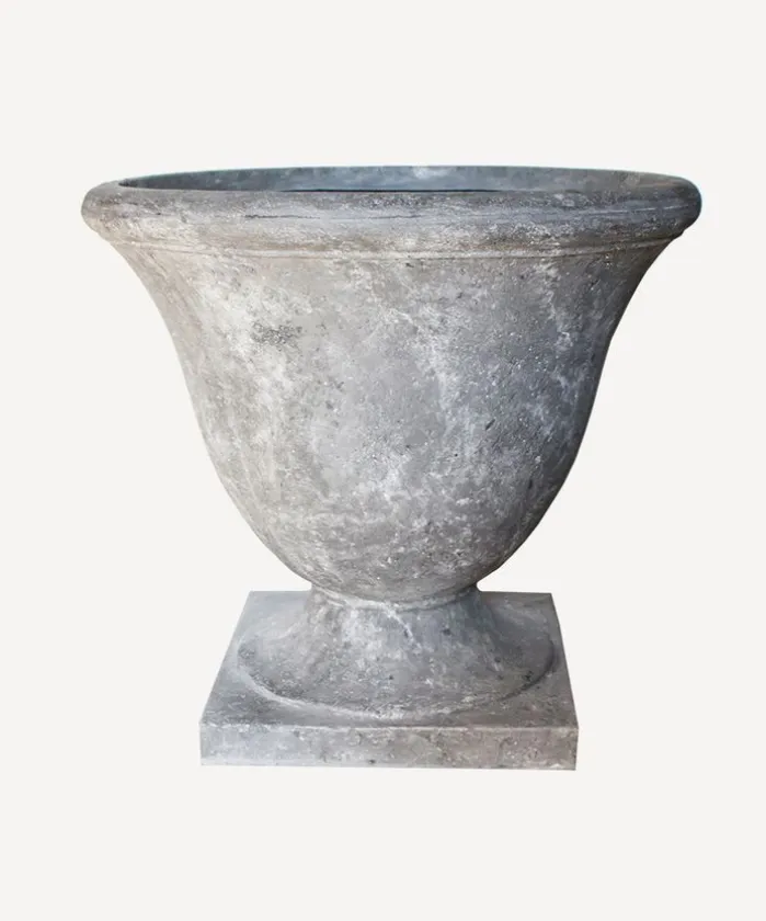 - Style Description:Wide bell shaped footed urn in a raw grey colour. Incredibly versatile planter that is great in any outdoor space.