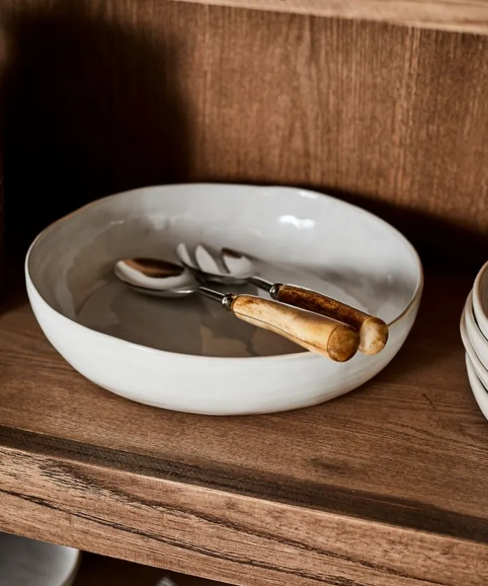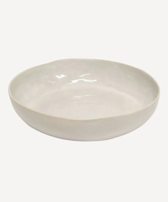 - Style Description:Rustic white large salad bowl in a freeform organic shape, just the thing for a collection of apples or a serving of baked vegetables.