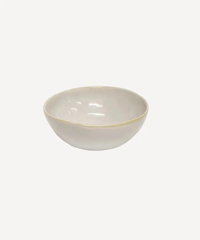 - Style Description:Freeform shaped small bowl in rustic white, perfect for poached pears and cream.