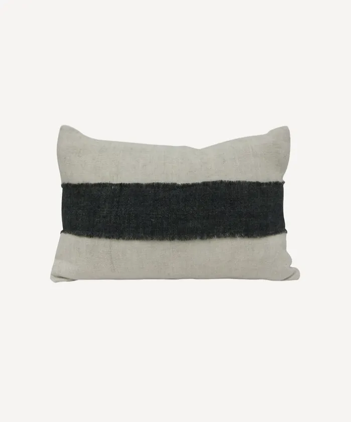 Heavy linen textured natural rectangle cushion with single black stripe.