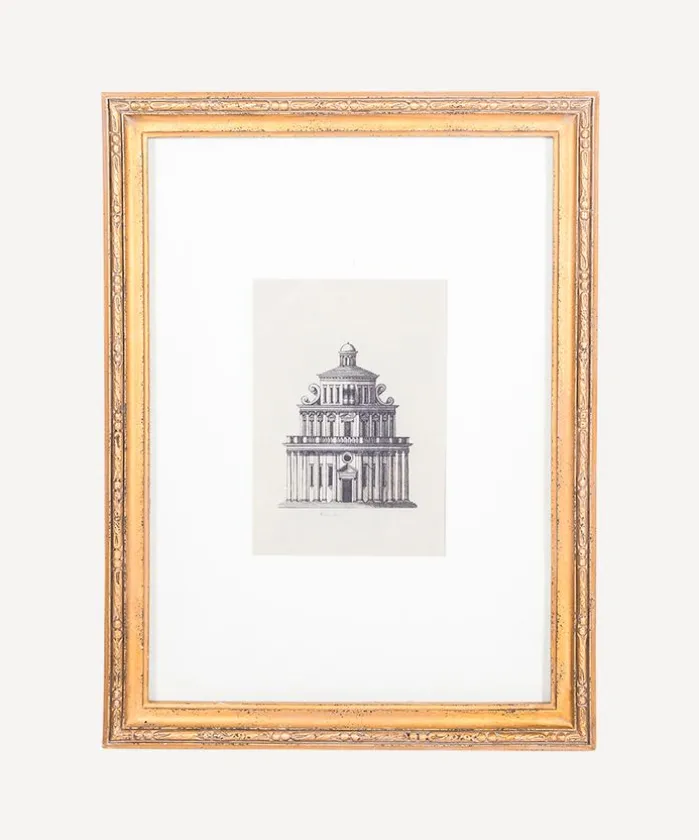 - Style Description:Create a gallery wall using different size frames. Keep the architecture inserts as shown or personalise with pictures of treasured moments. Classic aged gold frame with carved detailing.