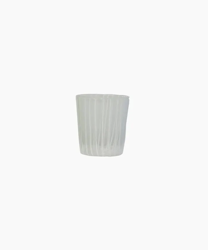 - Style Description:Create a playful tablescape using these handmade glass tumblers with irregular white stripes.