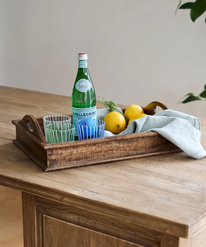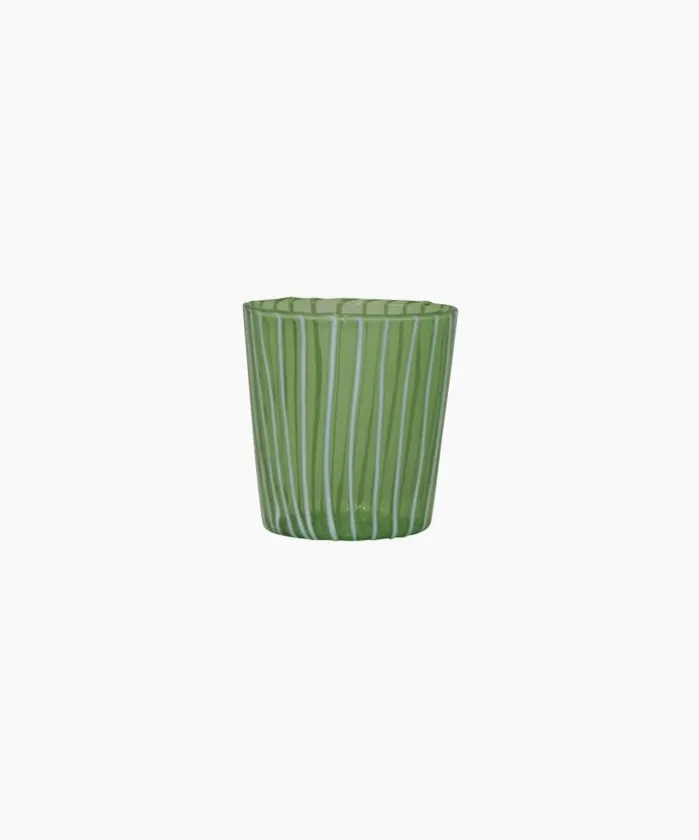 - Style Description:Create a playful tablescape using these handmade glass tumblers with irregular white stripes.