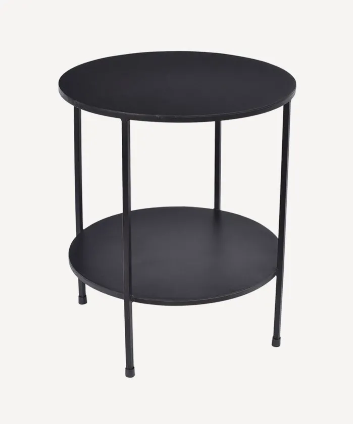 - Style Description:Stylish, modern and versatile this two tiered iron side table is an ideal indoor furniture piece anywhere in the house. Powder coated in matt black.