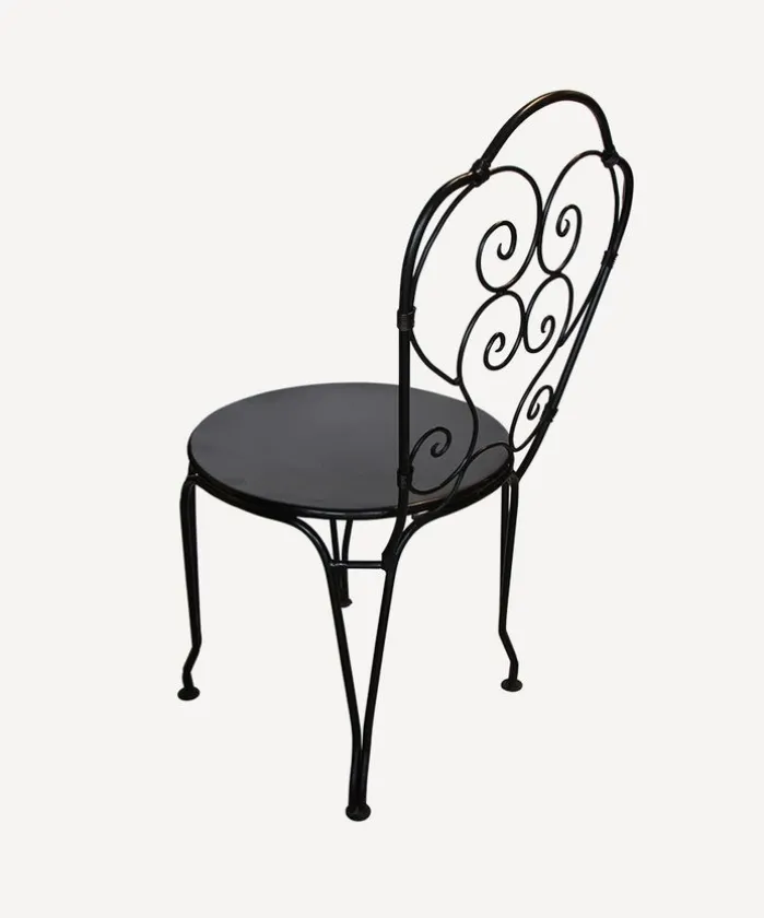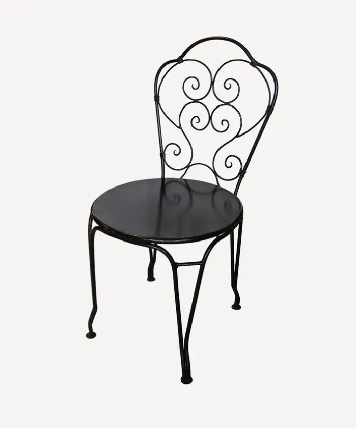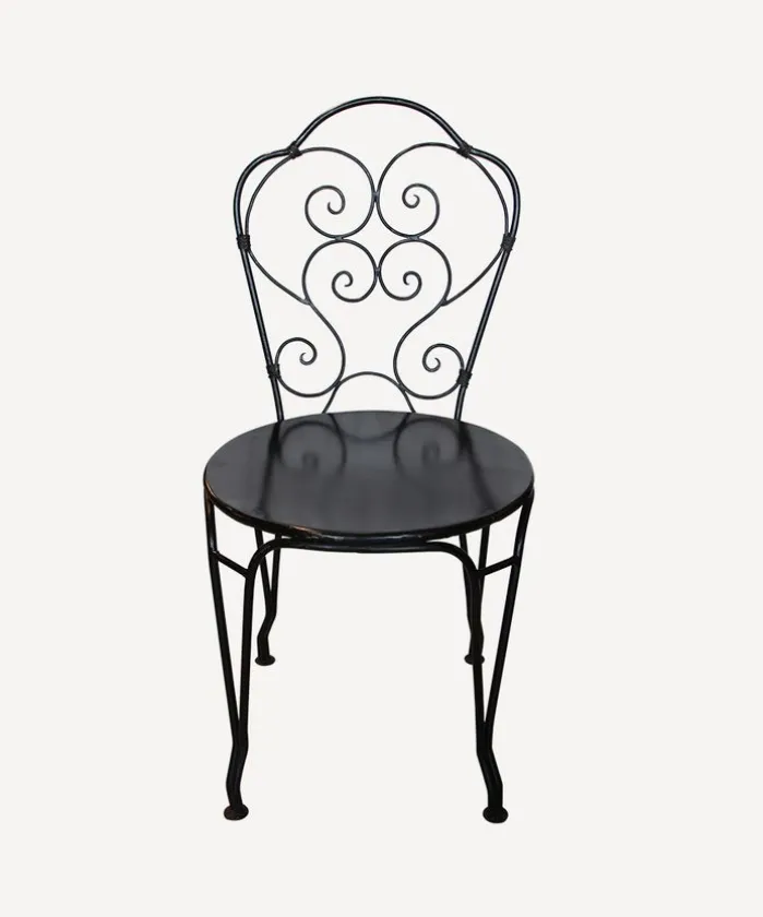 - Style Description:Black iron chair with a cut out swirl designed back. With its versatile colouring and solid iron frame, this chair can be effortlessly styled in any kind of space in the home.