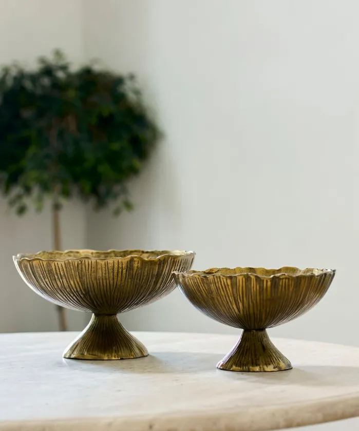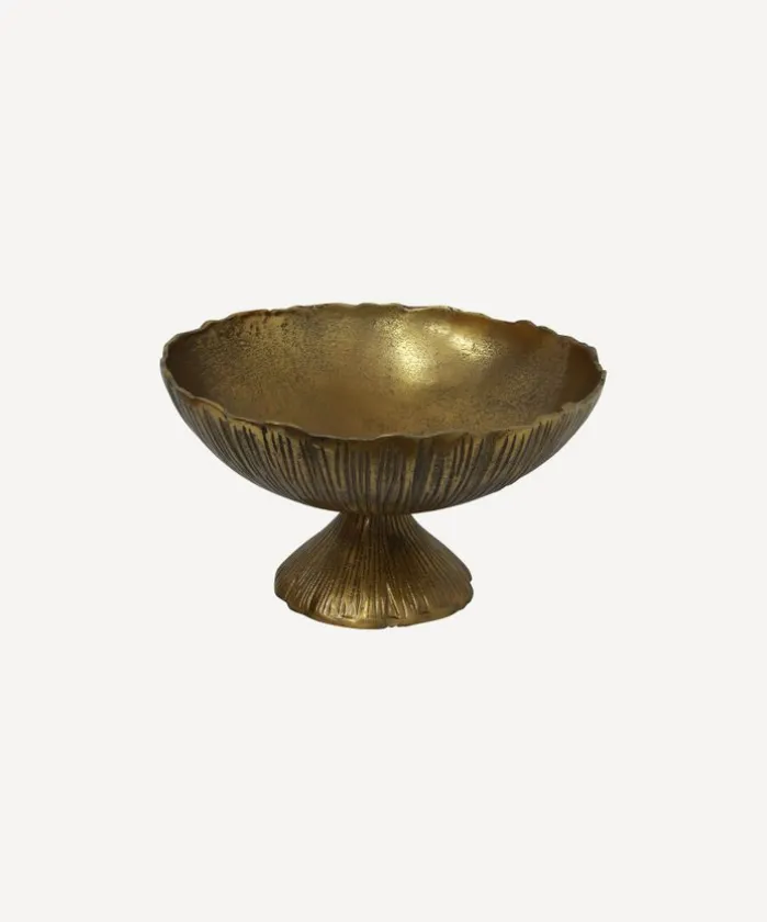 - Style Description:Impressed petal bowl on stand in an antique gold finish.