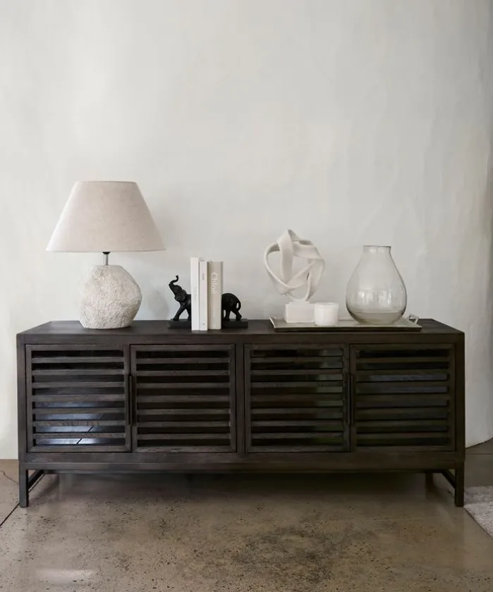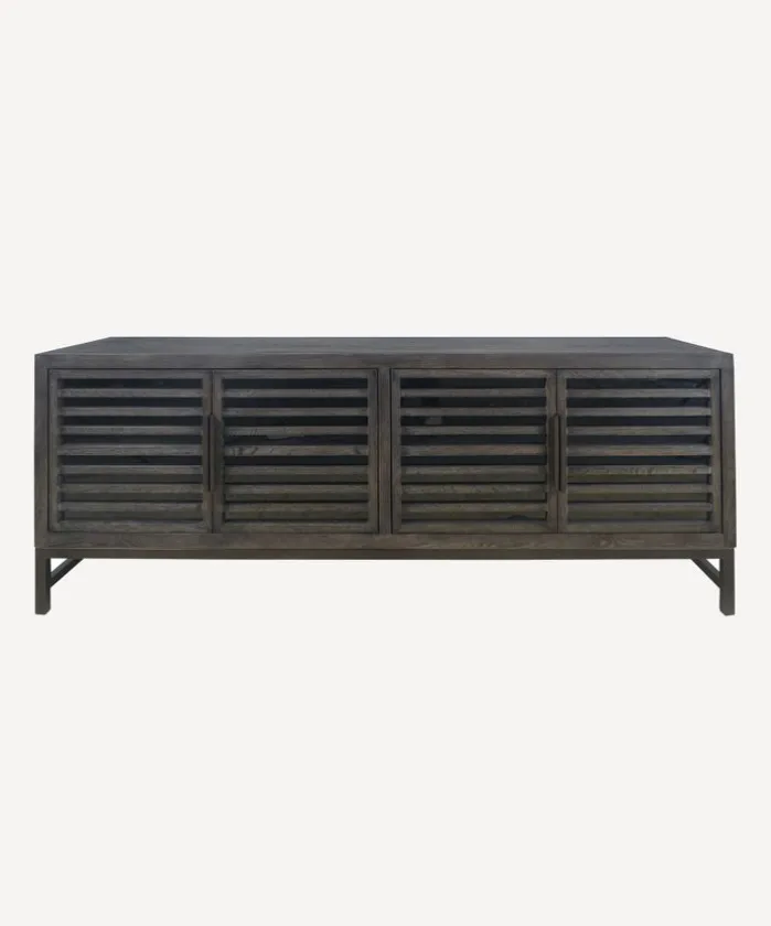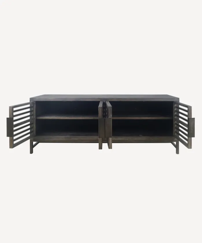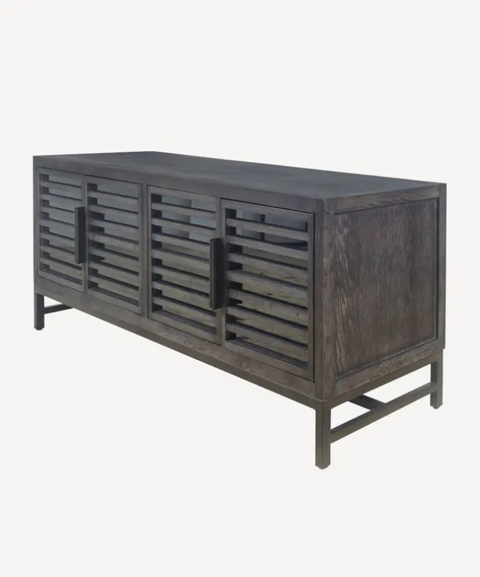 - Style Description:Sophisticated oak wood and glass slatted sideboard is an ideal entertainment unit or storage piece for any area of the home. The classic slatted design gives just the amount of visibility to silhouettes inside while hiding any unnecessary clutter.