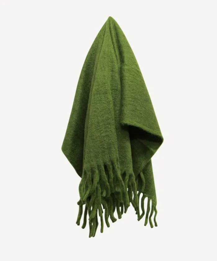 - Style Description:Snug throw in deep green colour with oversized tassel detailing.