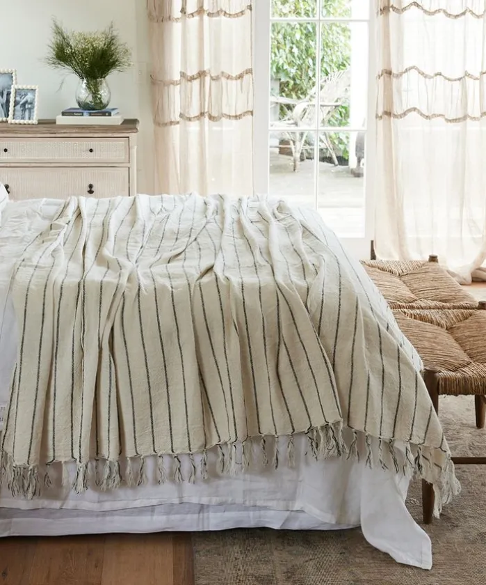 - Style Description:Relaxed ecru and black linen bed cover is the perfect addition to the summer bedroom.