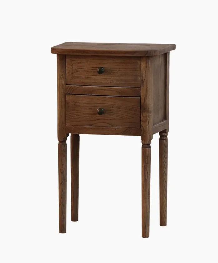 - Style Description:Charming, provincial wooden bedside with two drawers, made form reclaimed elm.