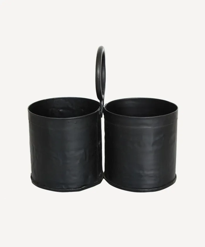 - Style Description:Black iron utensil holder, great for eating outdoors.